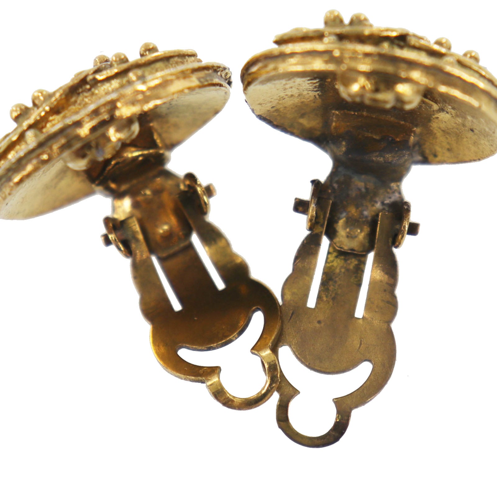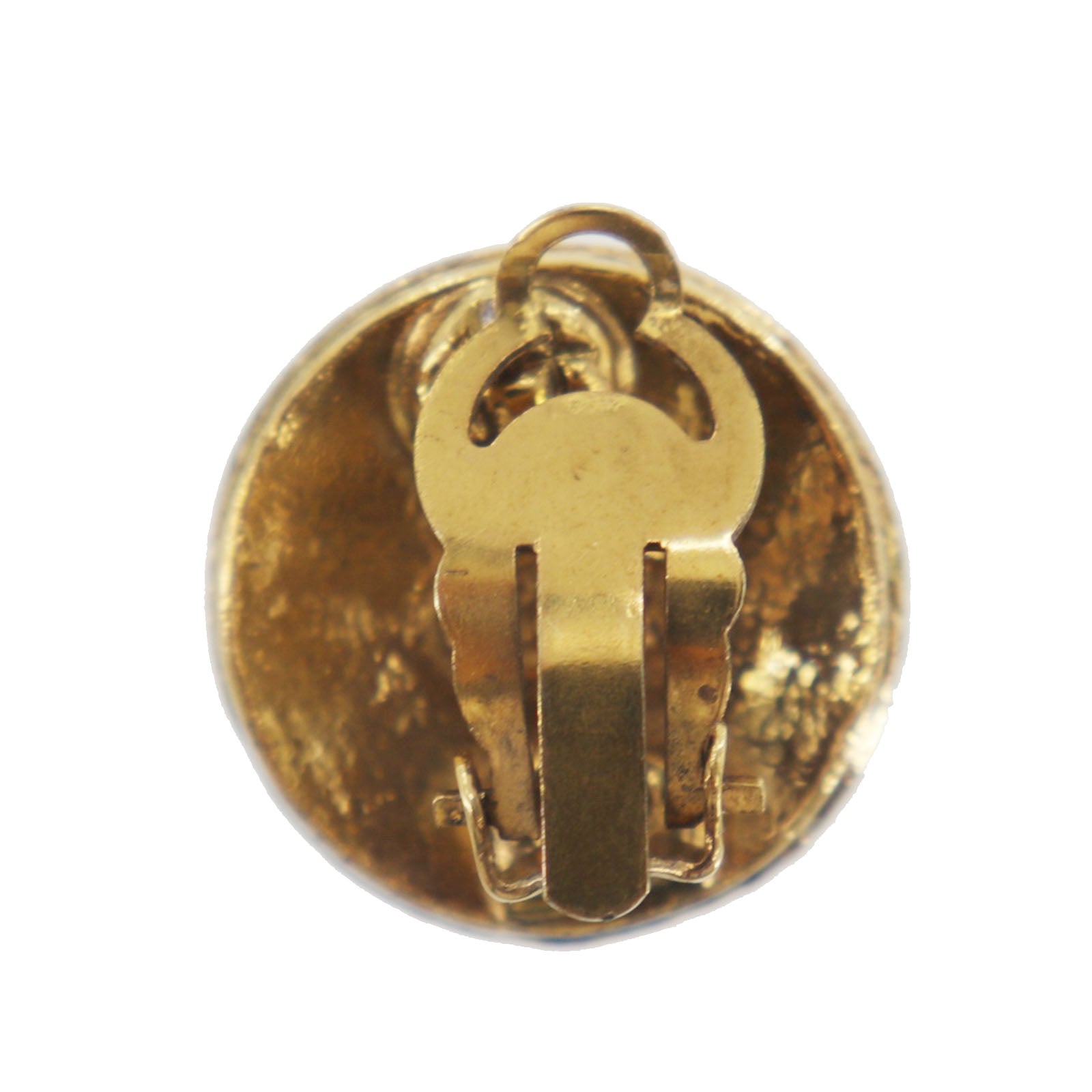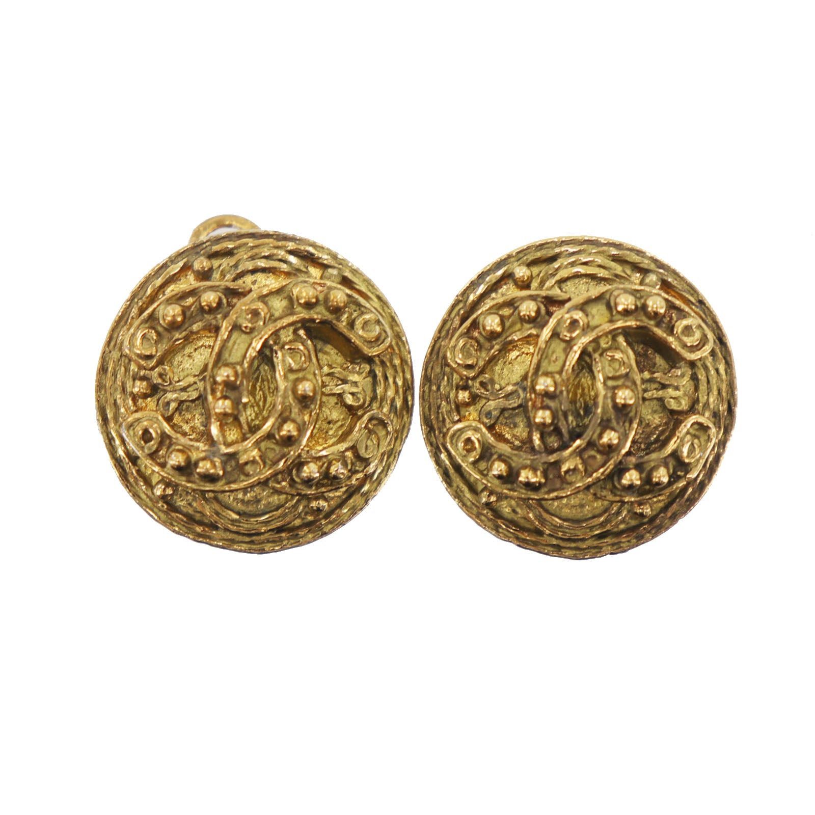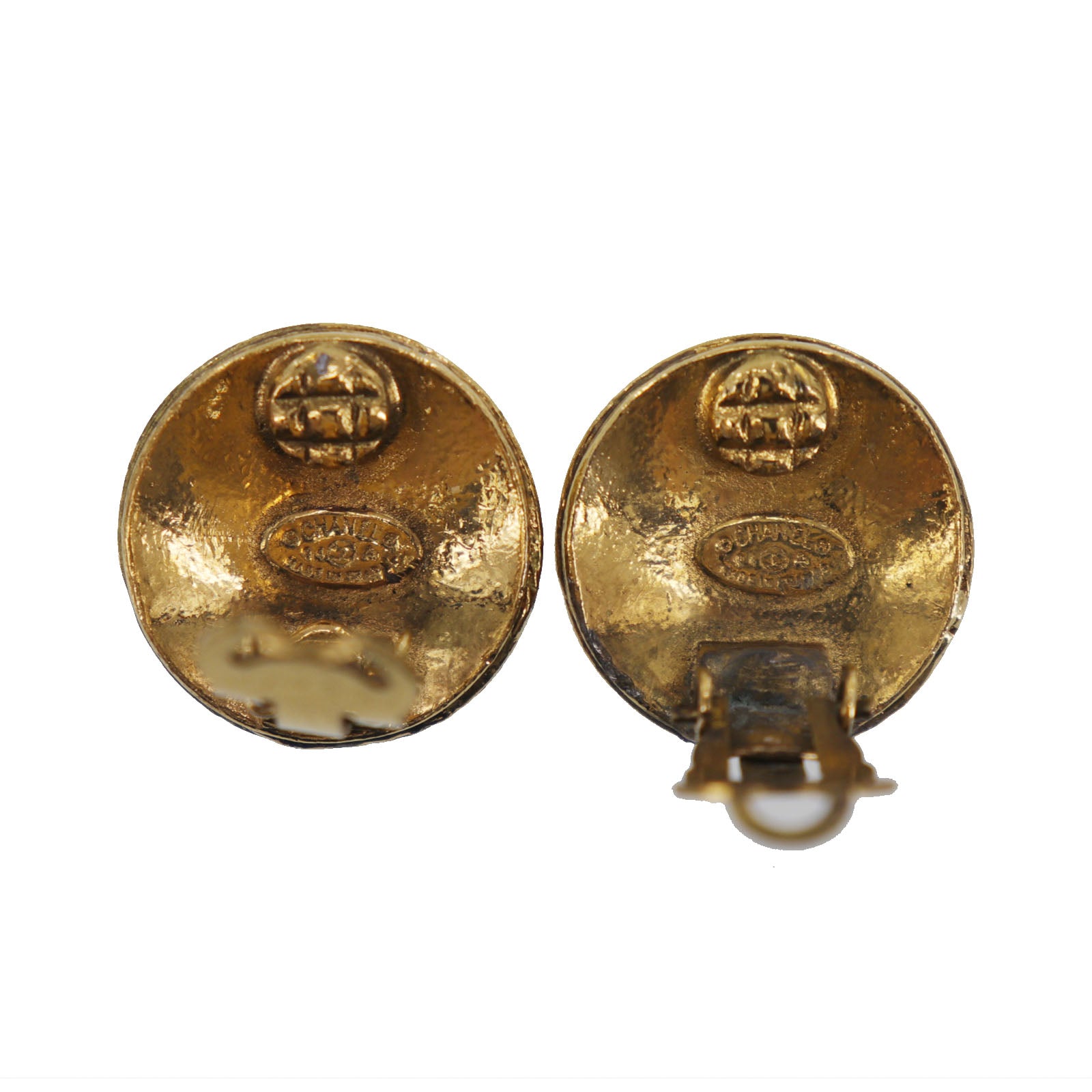 CHANEL CC Logos Circle Round Earrings 94A Clip-On Gold #CL331
