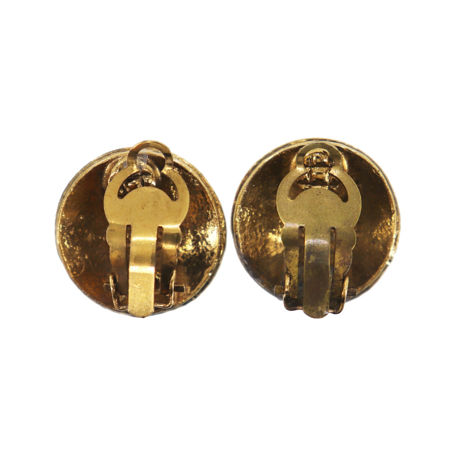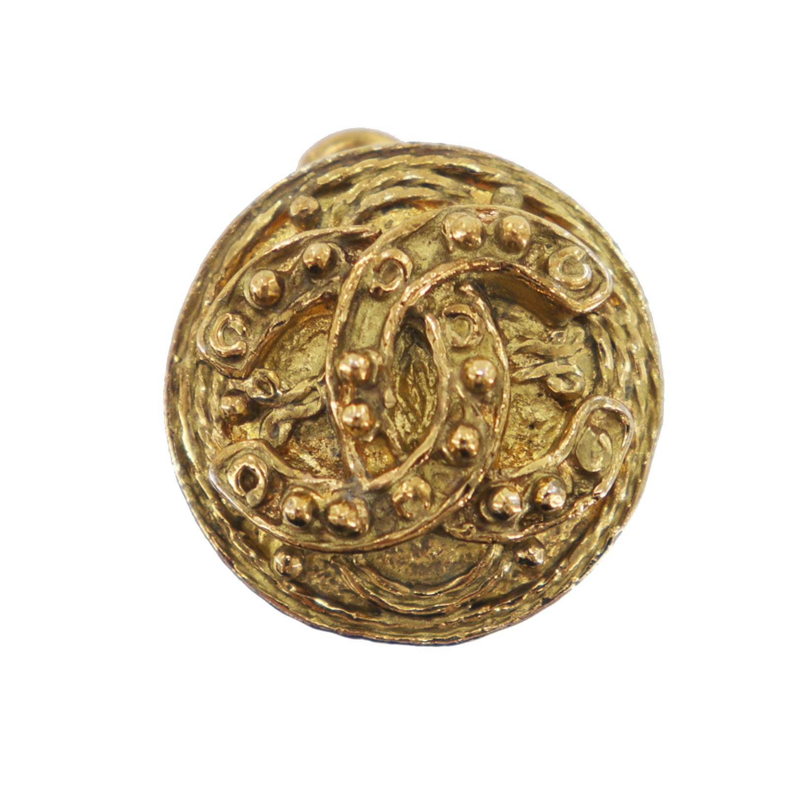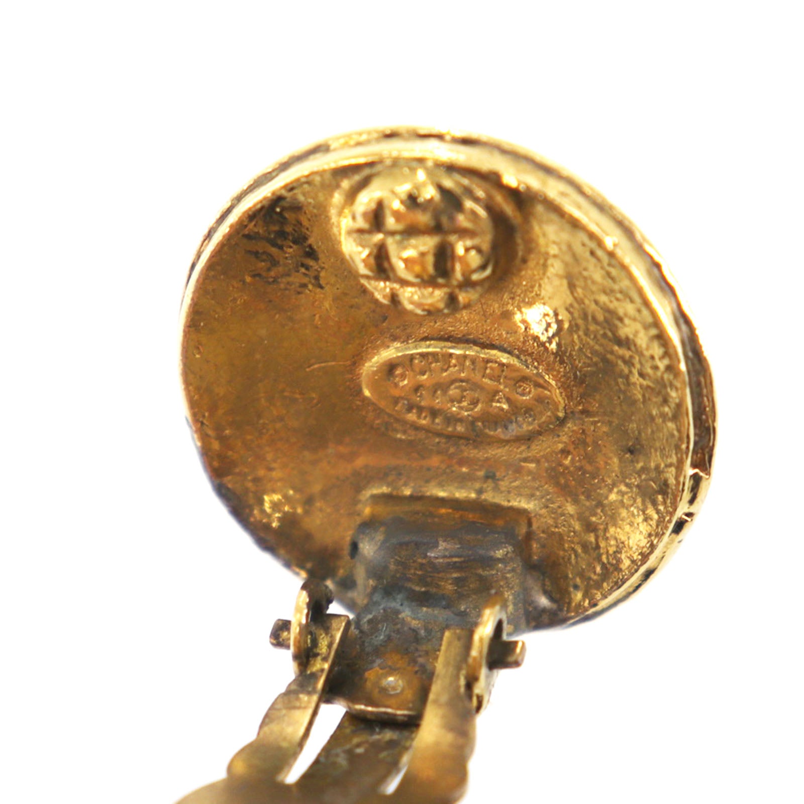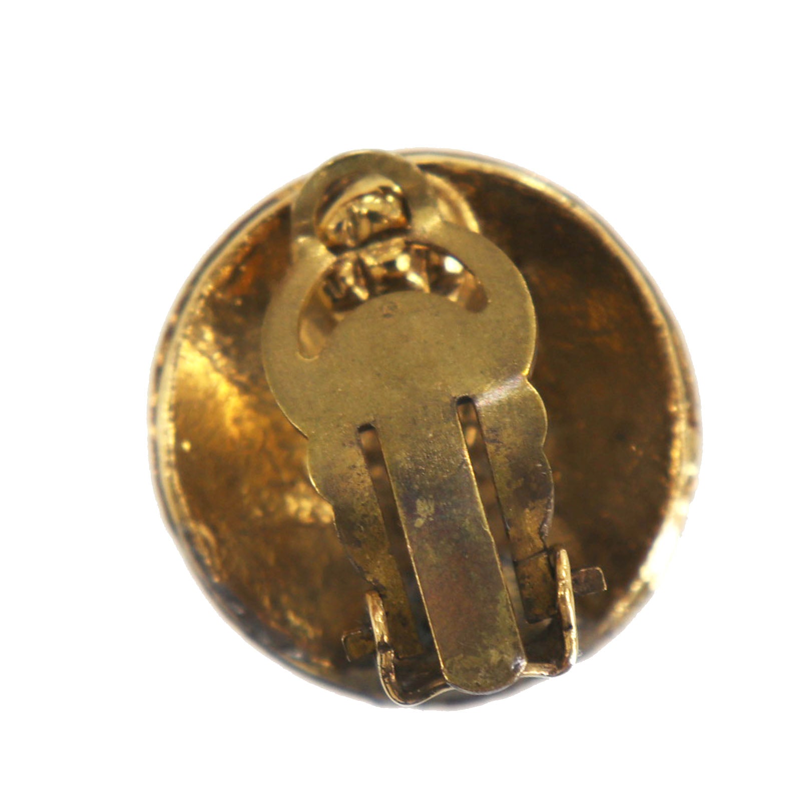 CHANEL CC Logos Circle Round Earrings 94A Clip-On Gold #CL331