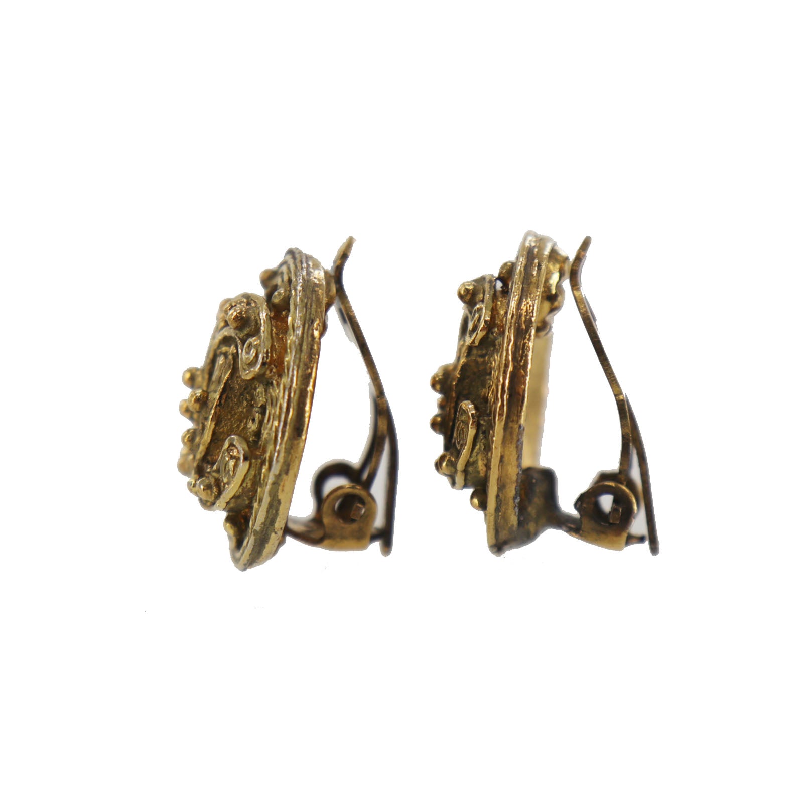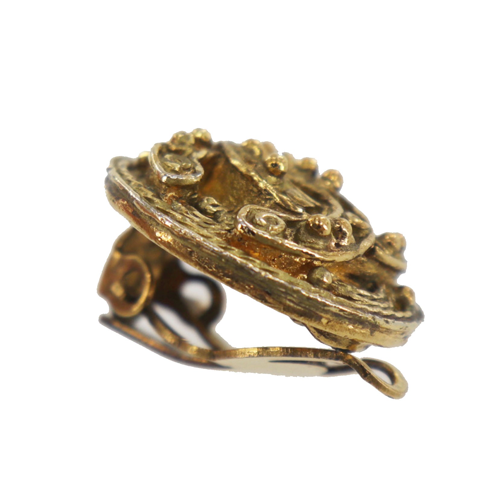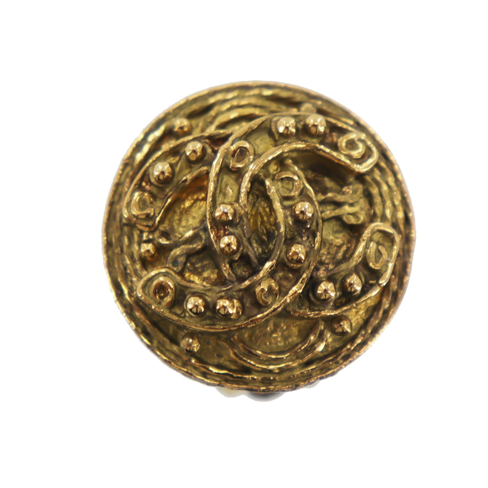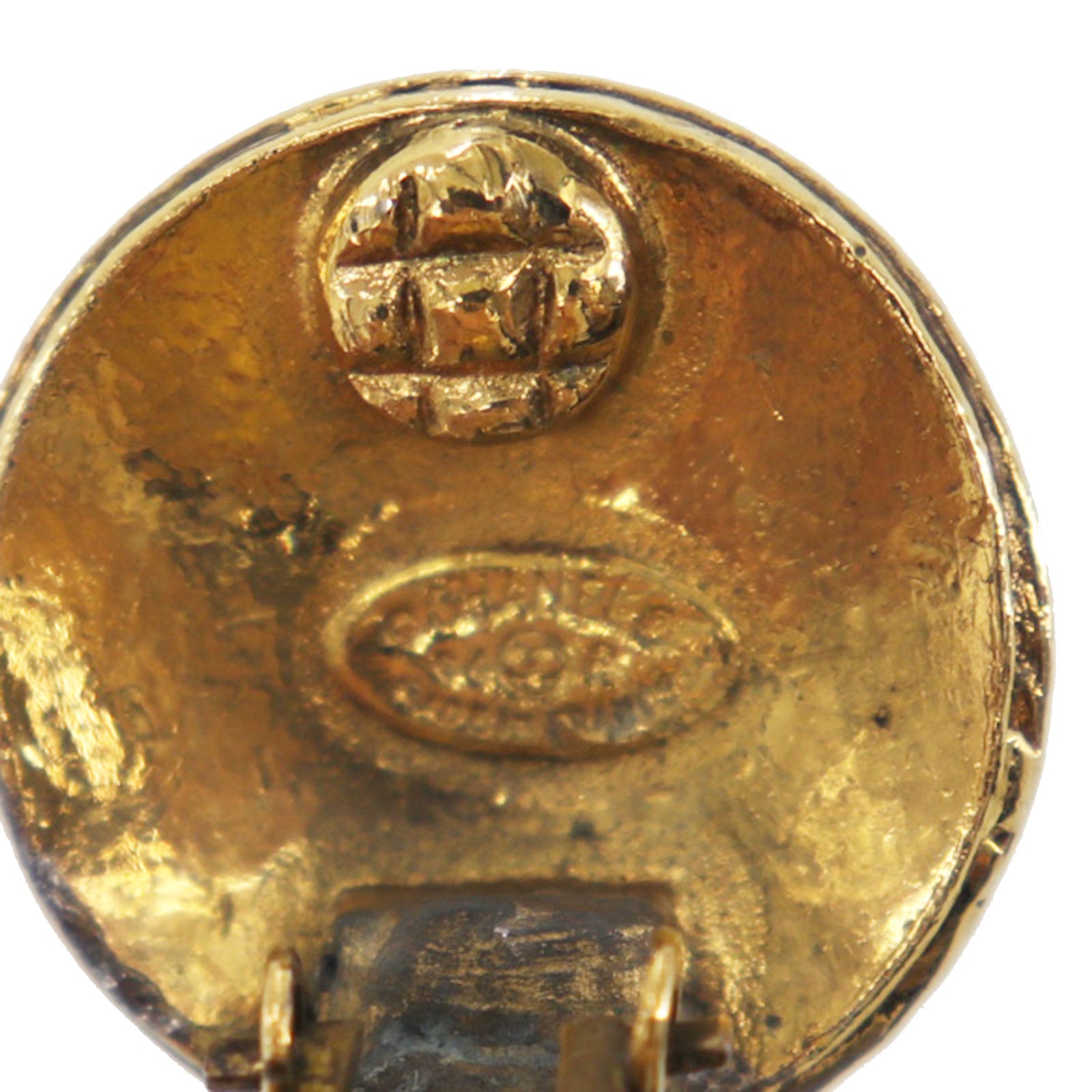 CHANEL CC Logos Circle Round Earrings 94A Clip-On Gold #CL331