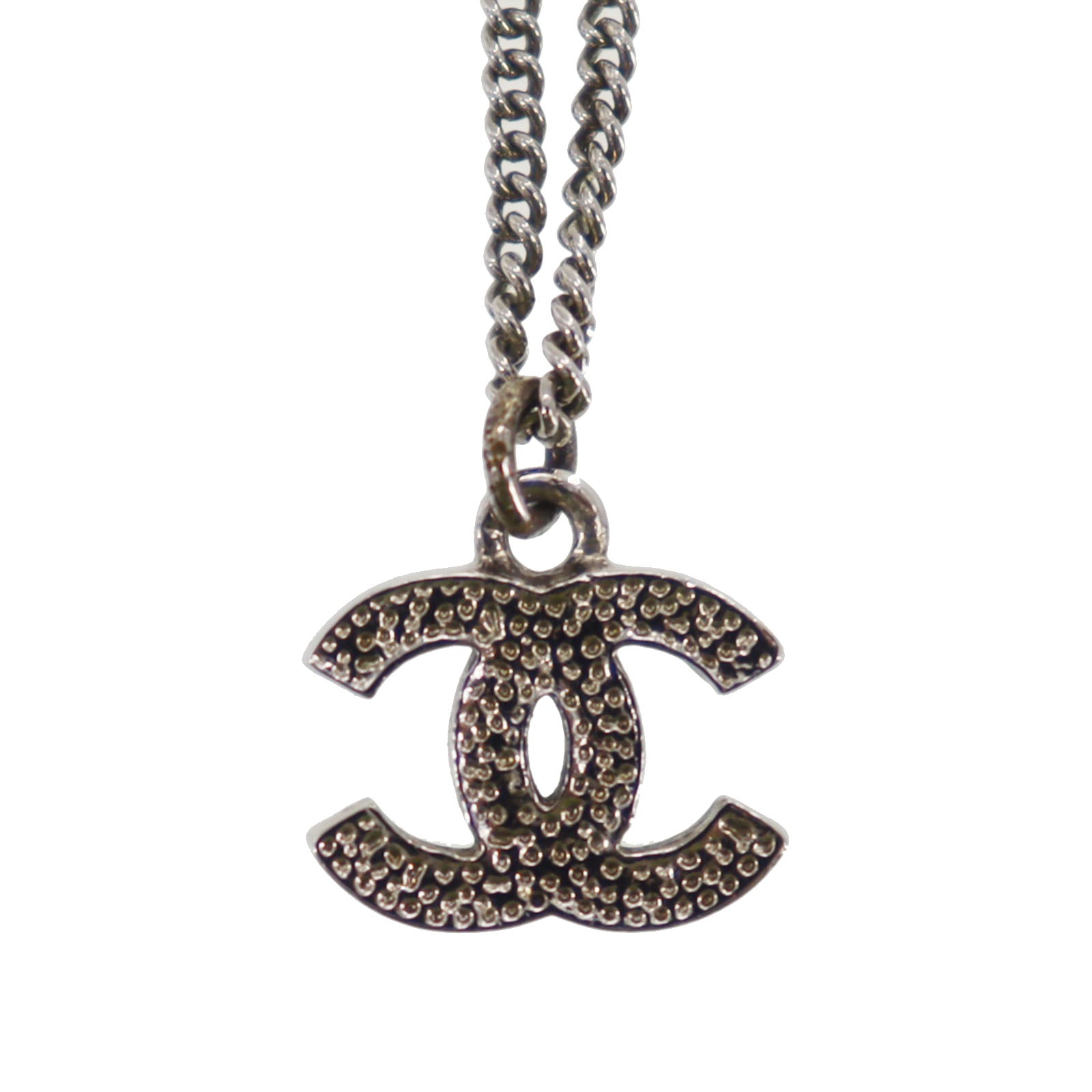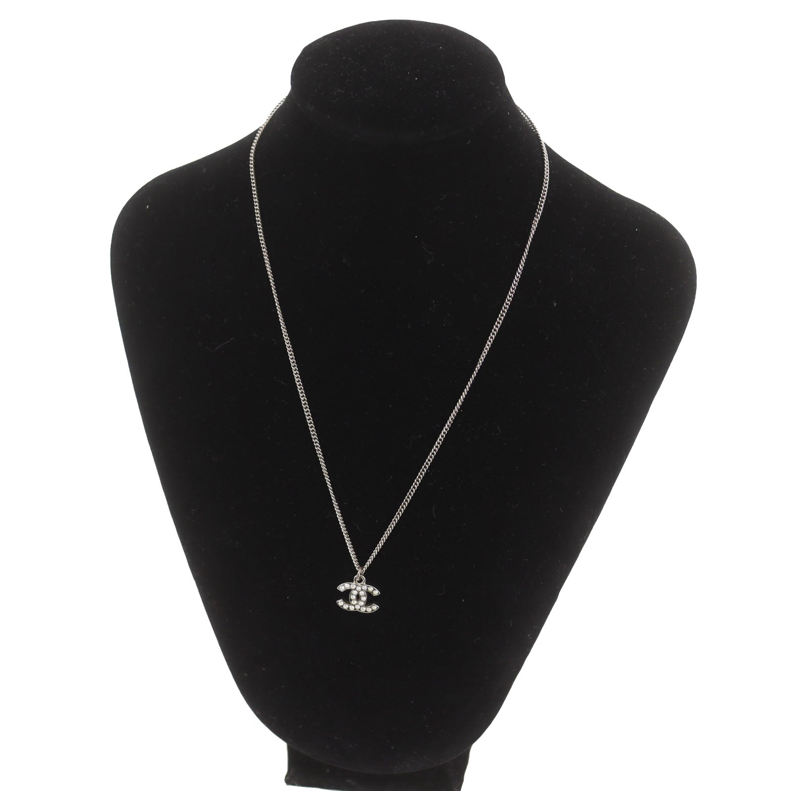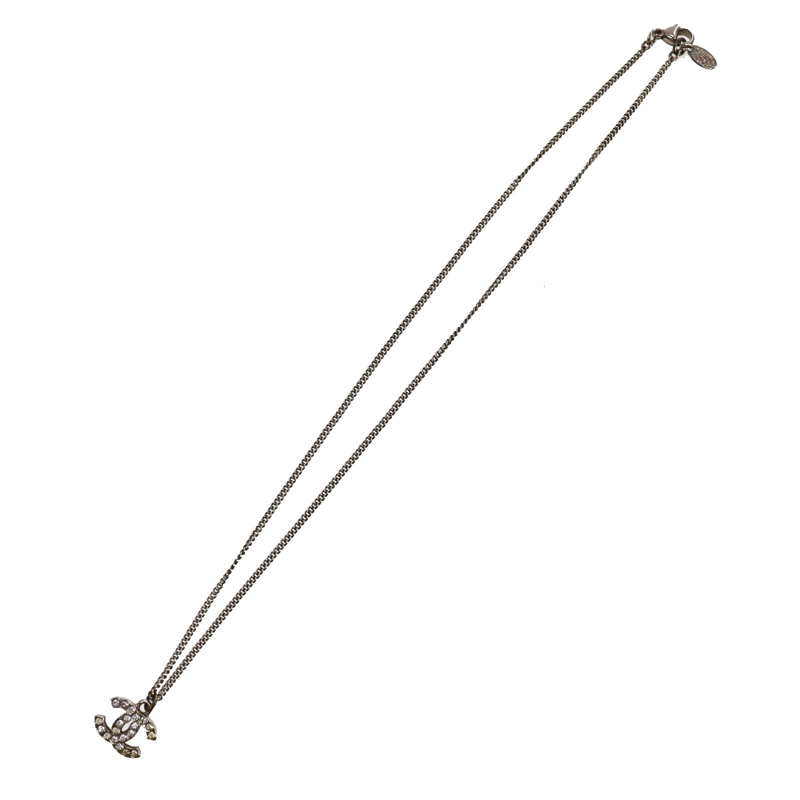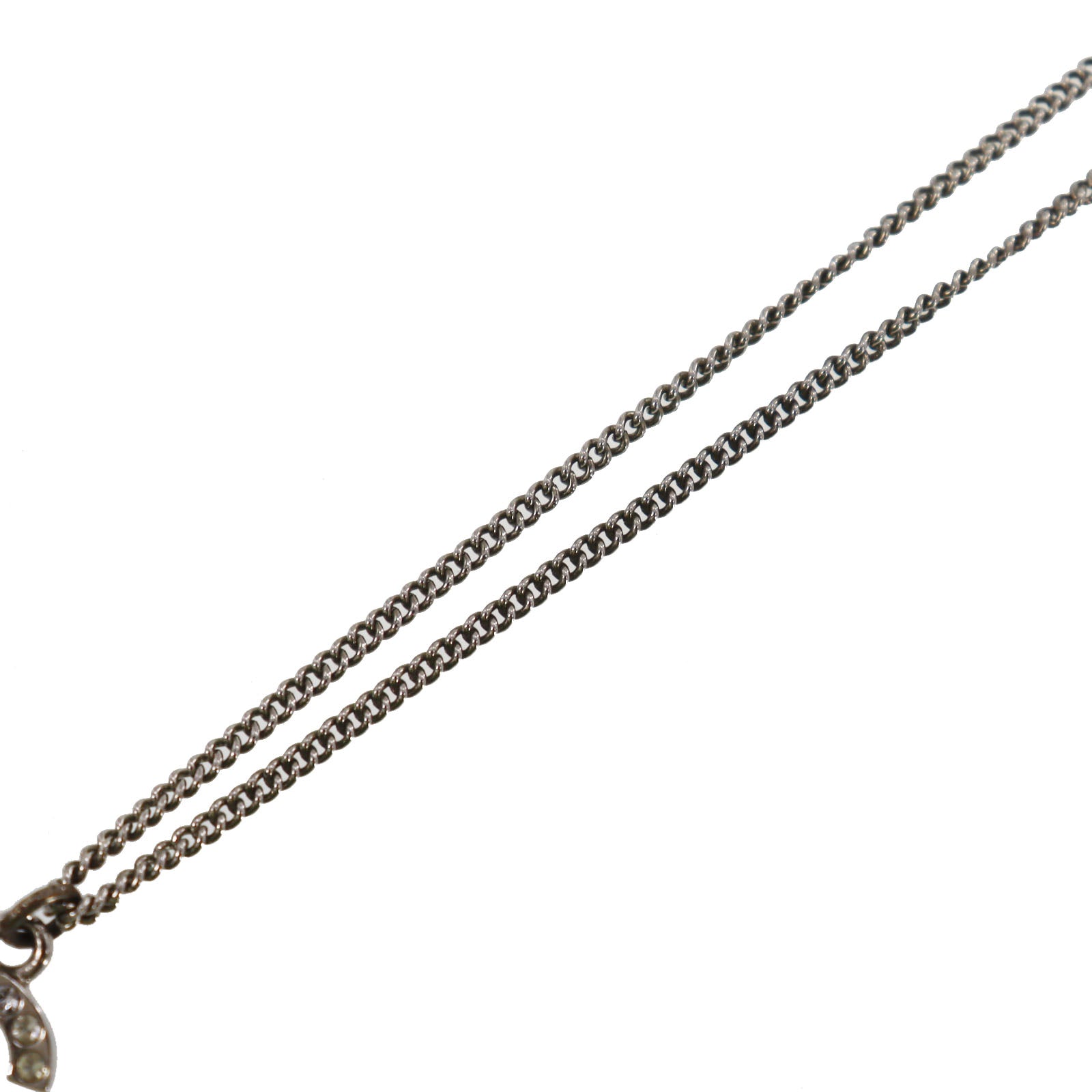 CHANEL CC Logos Rhinestone Silver Plated Chain Necklace C11V #BQ122