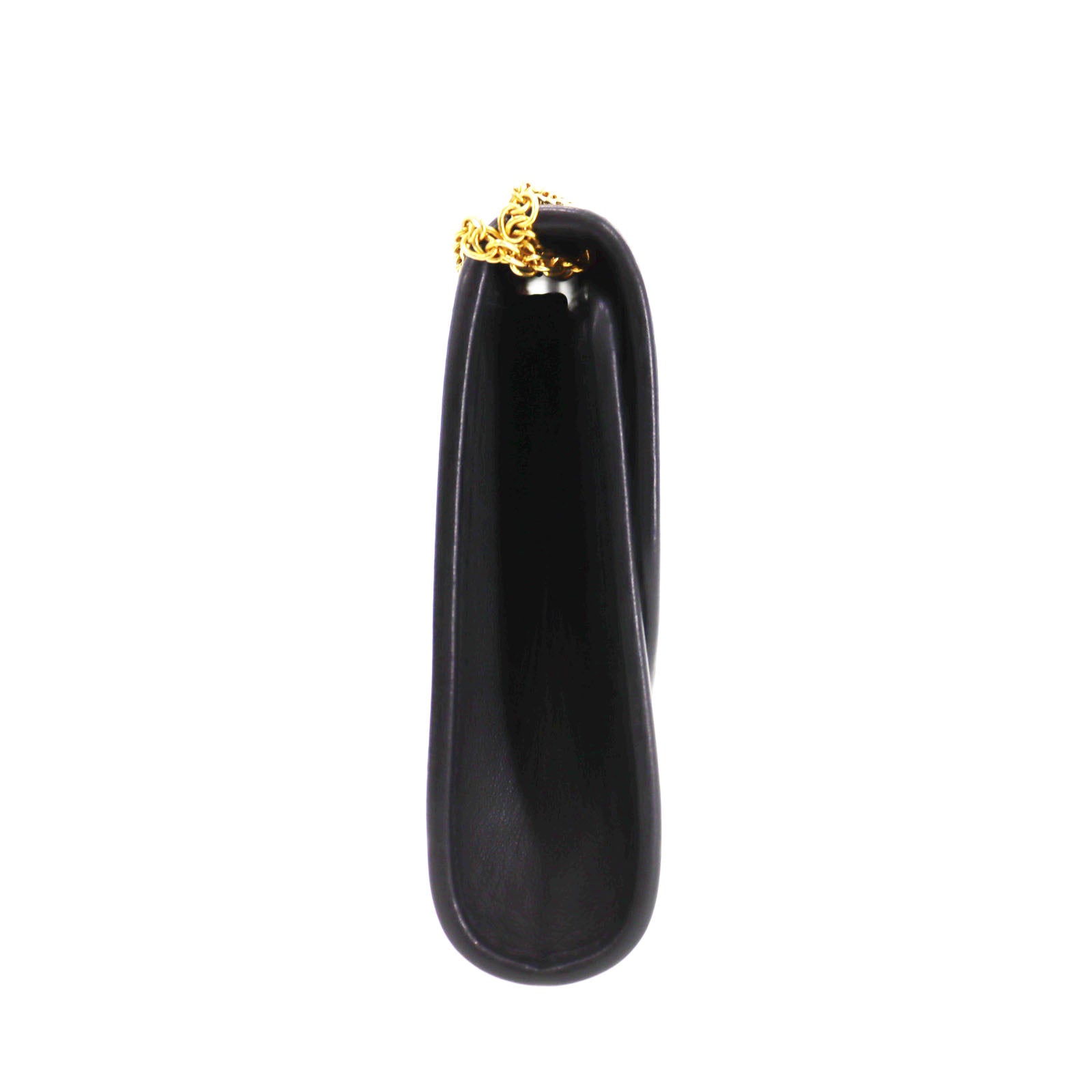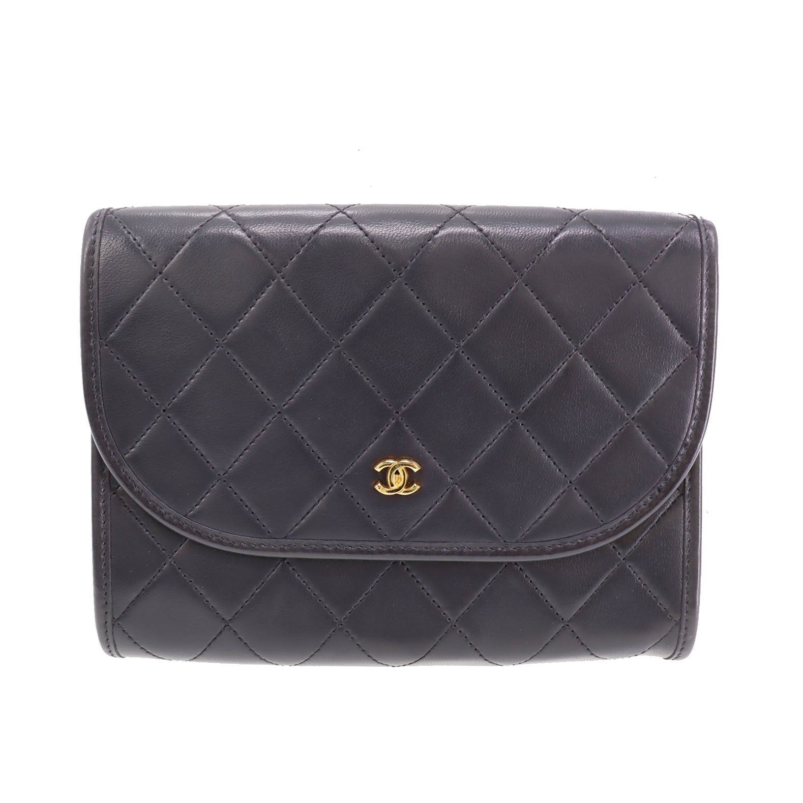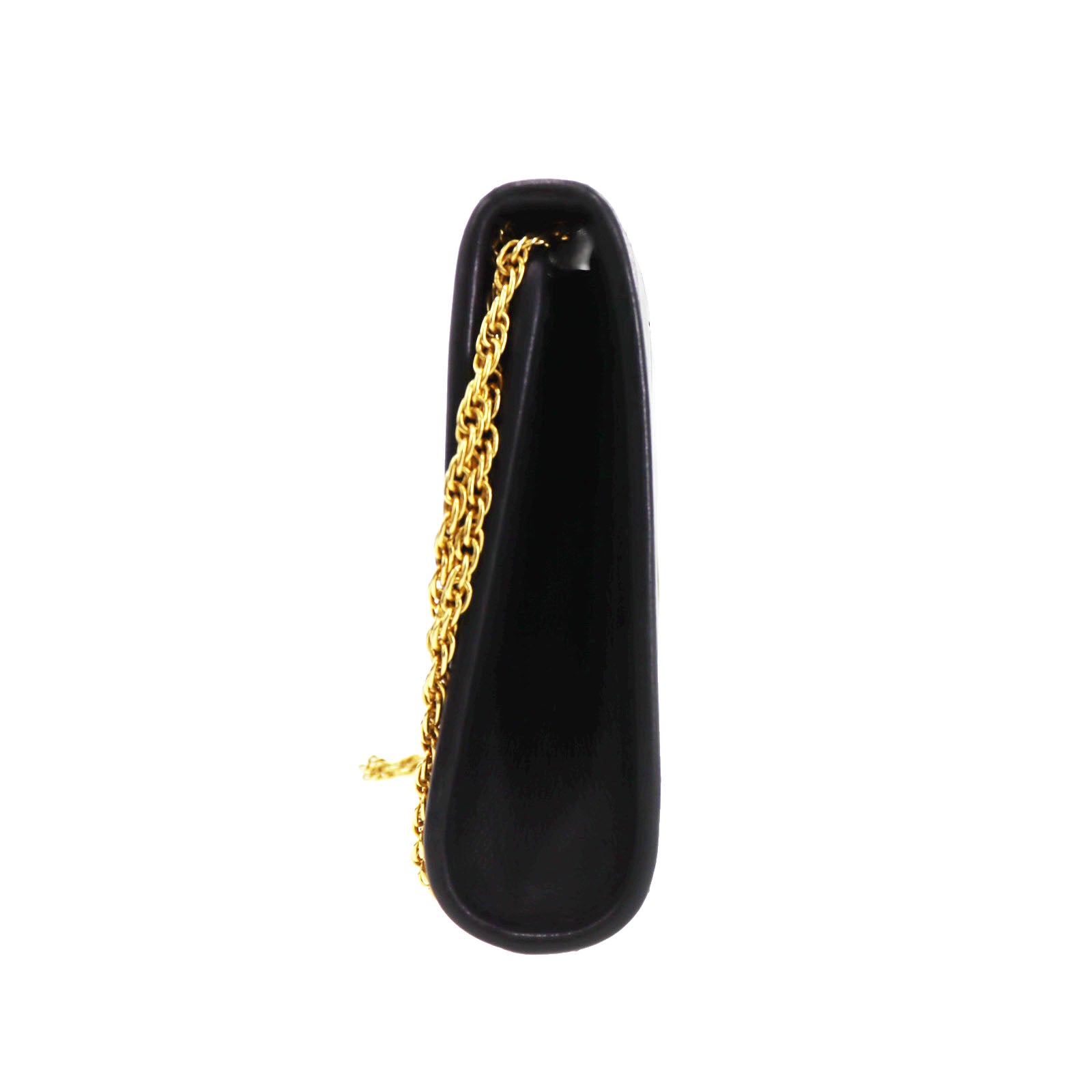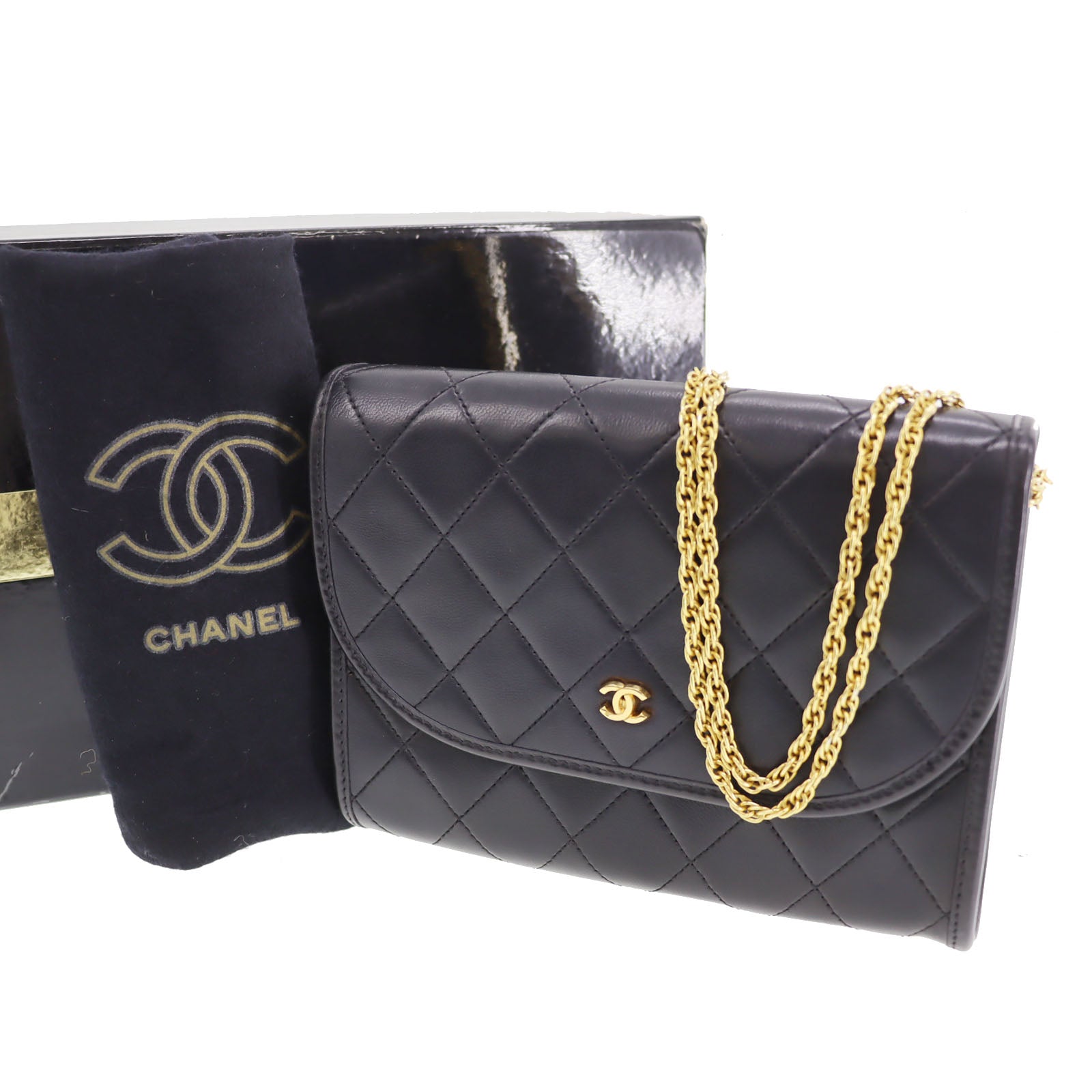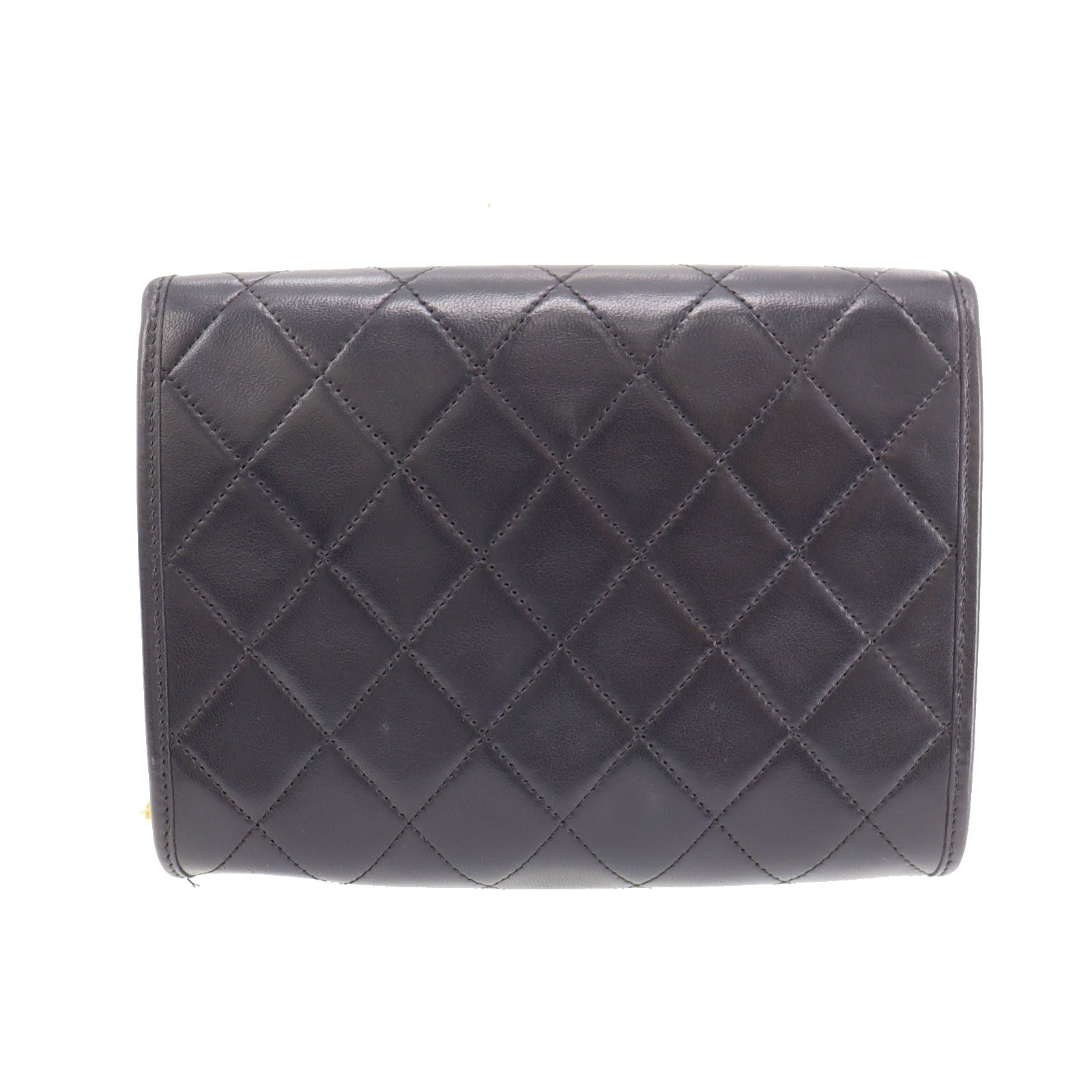 CHANEL Chain Handbag Pouch Black Leather #CJ729