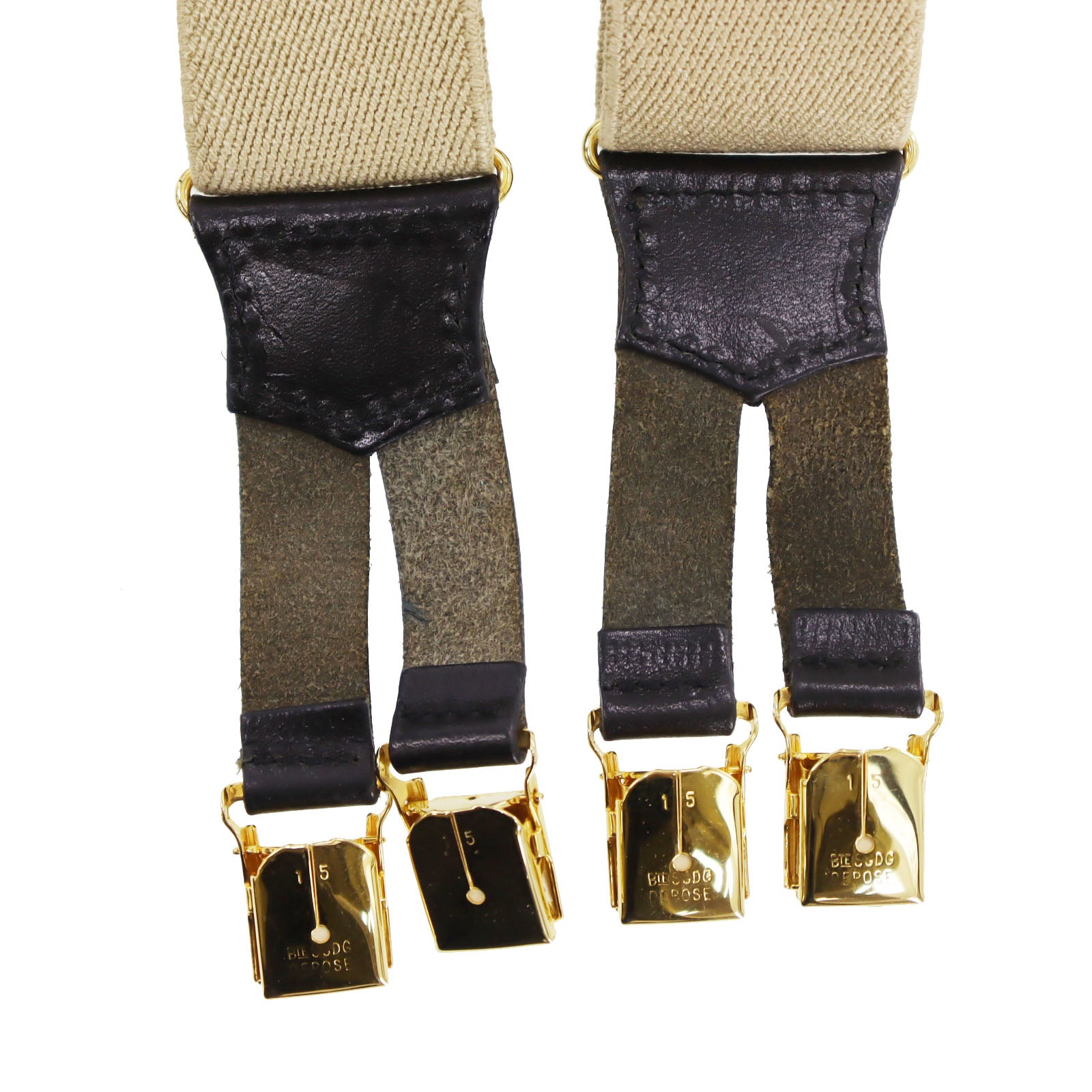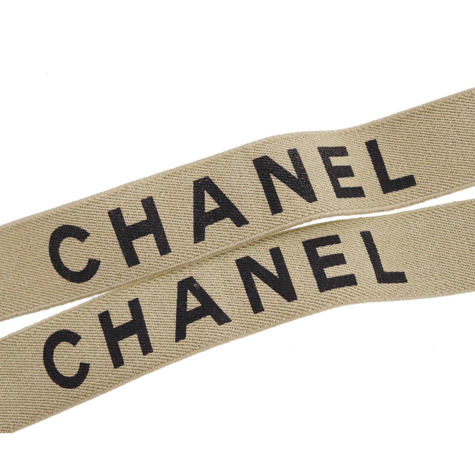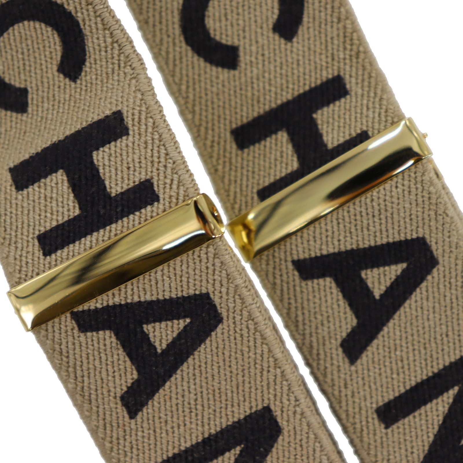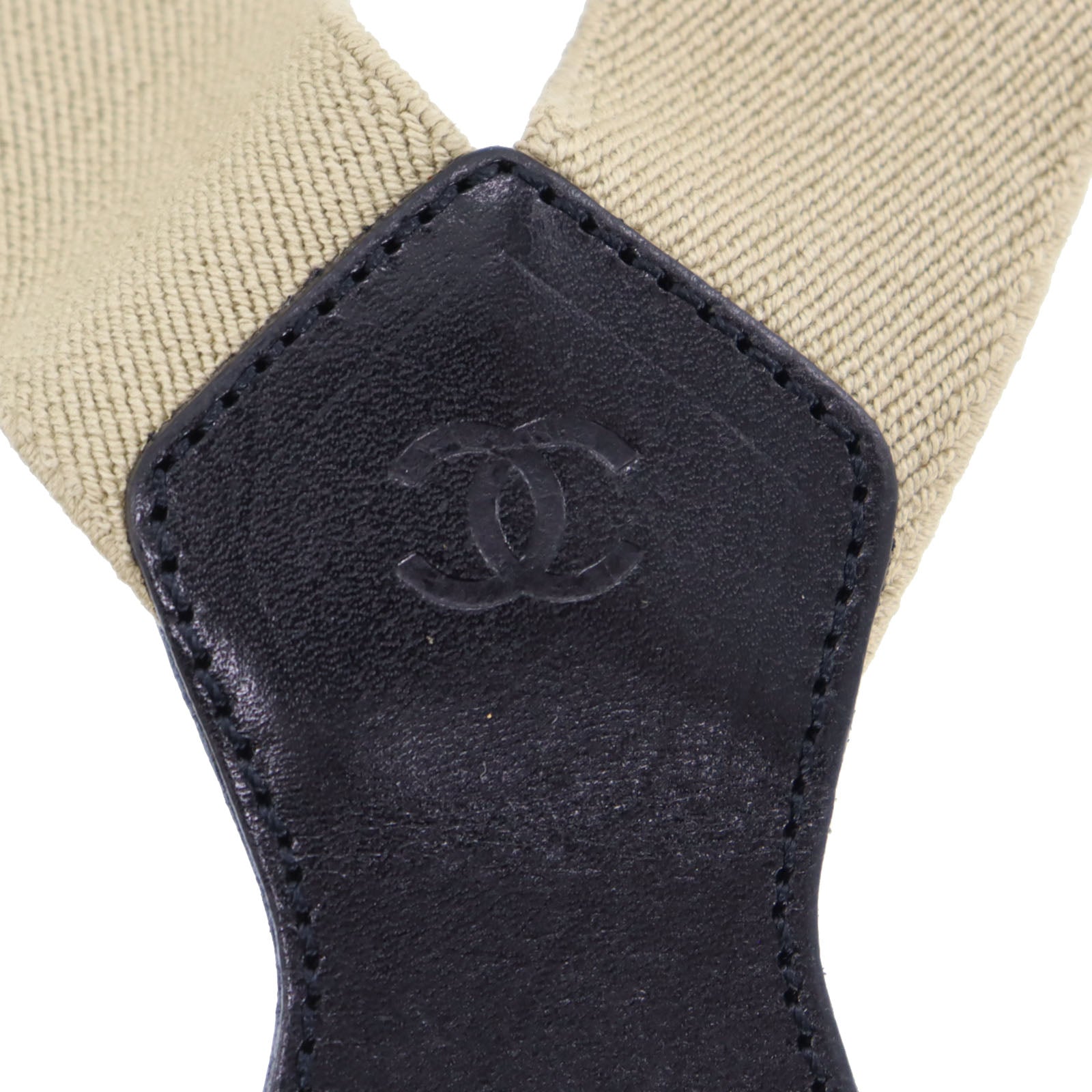CHANEL Logo Suspender Beige Sewing Elastic Leather #CJ735