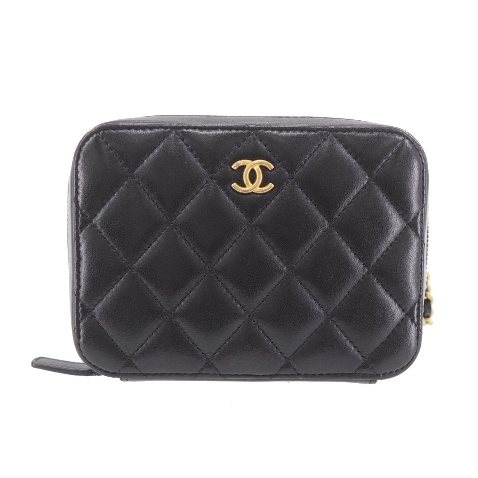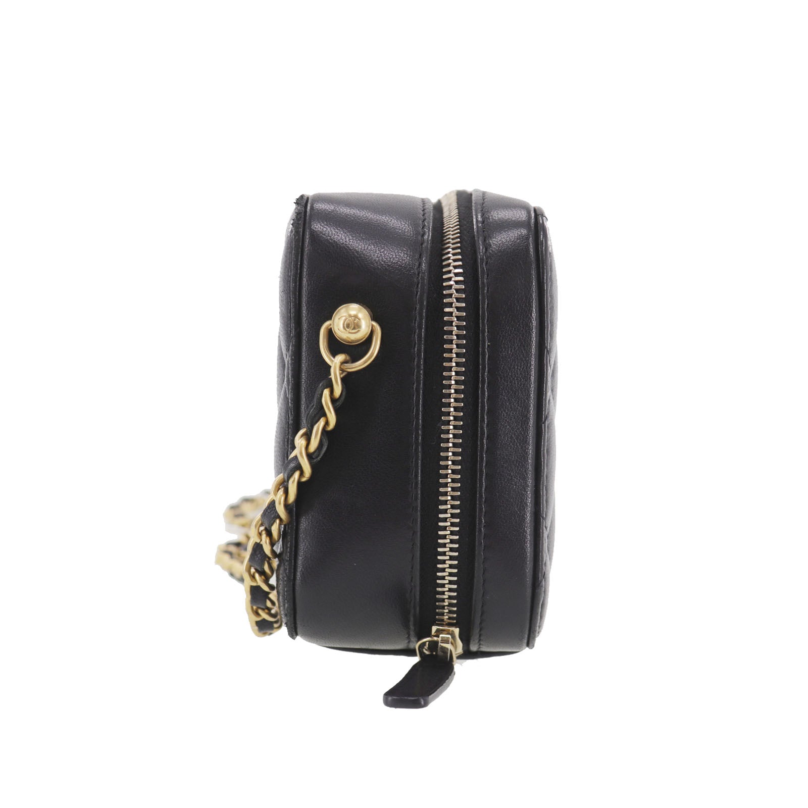 CHANEL Matelasse Crossbody Shoulder Bag Black Lambskin #EH289